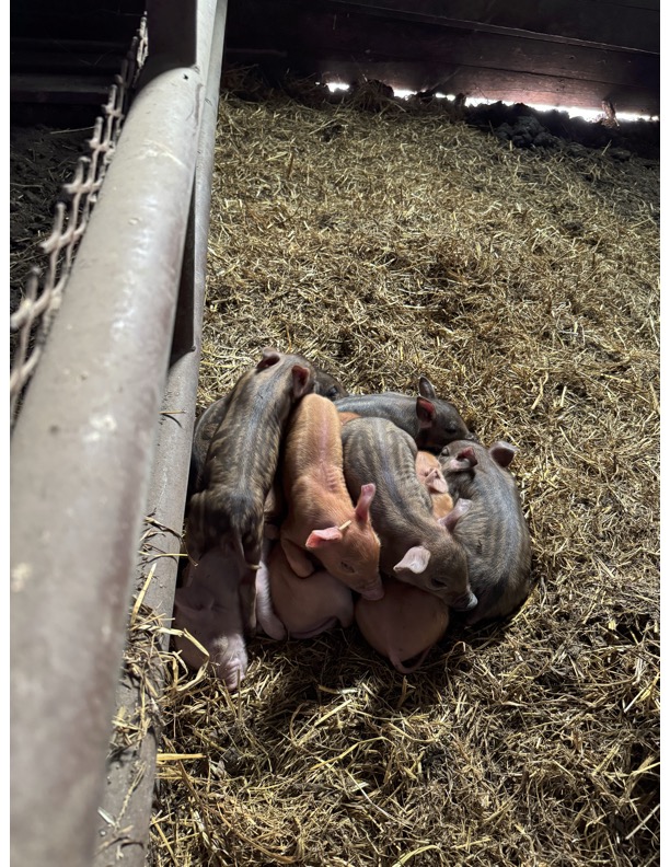 To inquire, please email Jazmin at jaz@brownsranch.us for availability. We raise a variety of mixed heritage breeds that have done well in our environment, surviving our winters outside with straw bedding. Our breeds include crosses of Berkshire, Tamworth, Old Spot, and Mangalitsa.